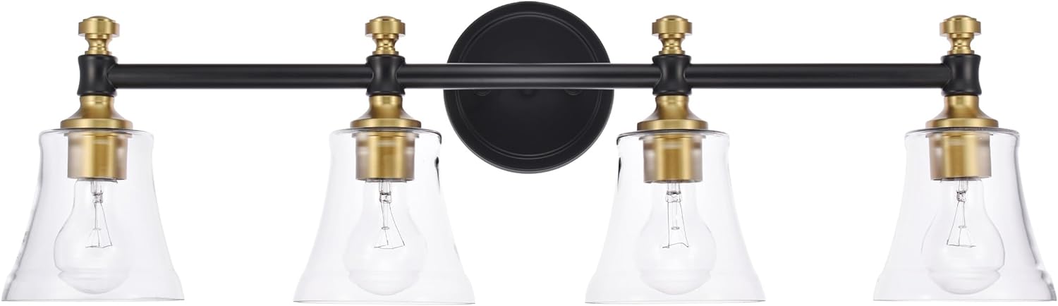 This bathroom vanity light fixture uses four medium-based E26 bulbs (not included) and is fully dimmable when used with dimmable bulbs and compatible dimmer switch